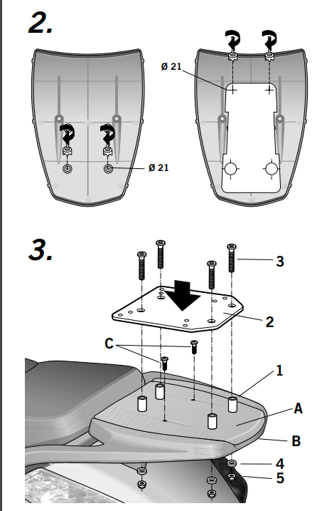 K upevnění vrchního kufru SHAD na motorku stačí namontovat tuto montážní sadu, plotna je vždy součástí kufru (kromě kufrů TR48/TR37).